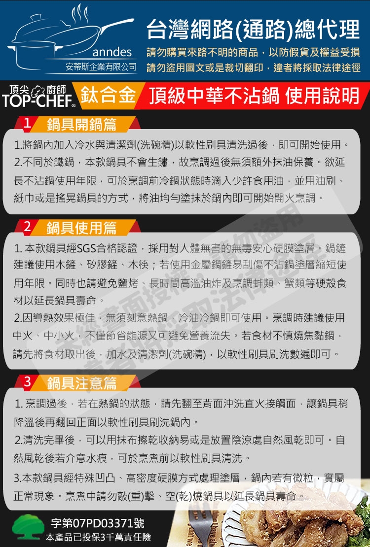 5.本產品隨著長期烹調,鍋內如有變深等現象,實屬正常,無須刻意換鍋。