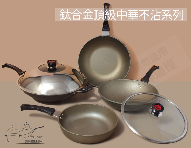 1. 鈦合金頂級中華33公分不沾平底鍋 附鍋蓋