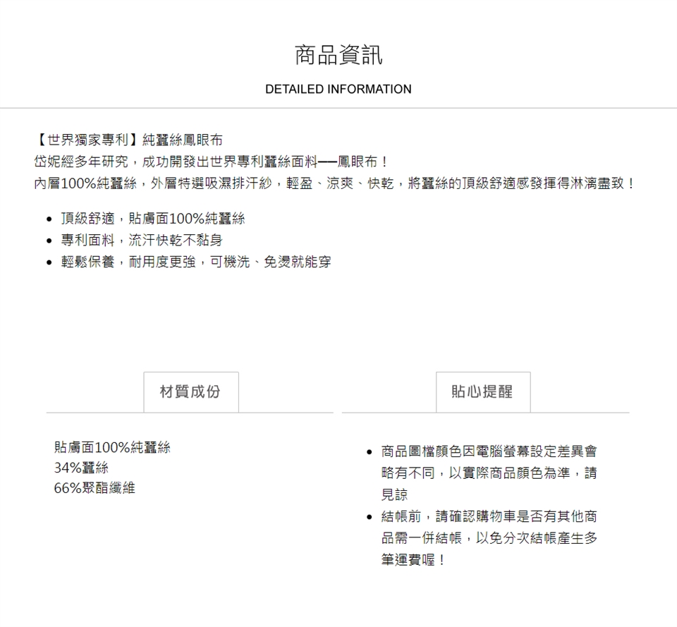 ► 蠶絲最主要的成分就是蛋白質,如洗劑內有分解成分(蛋白分解酵素),將會造成蠶絲商品永久性傷害。