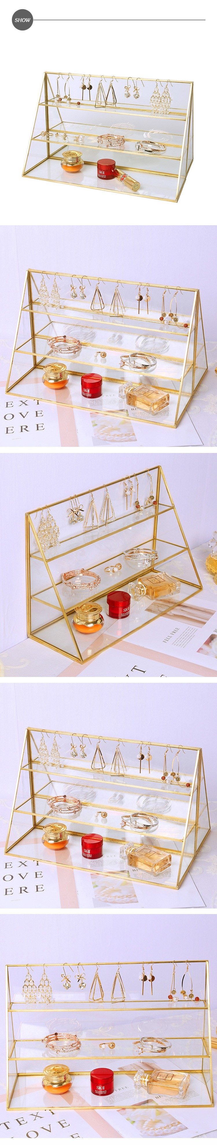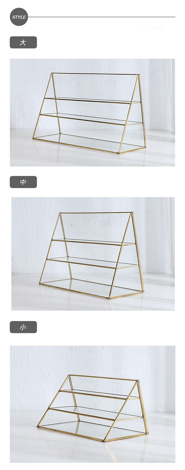 北歐時光 時尚歐式金色邊框三角玻璃展示架 中號