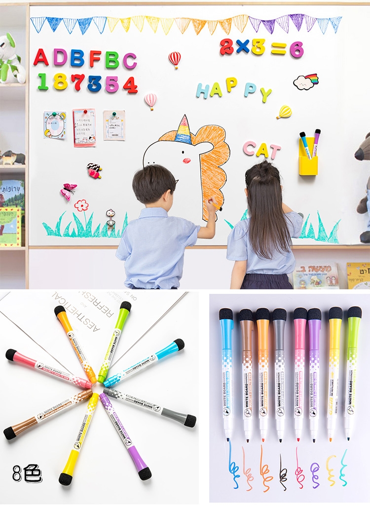 新款升級版白板筆8入組,筆尖選用纖維筆頭不易變形
