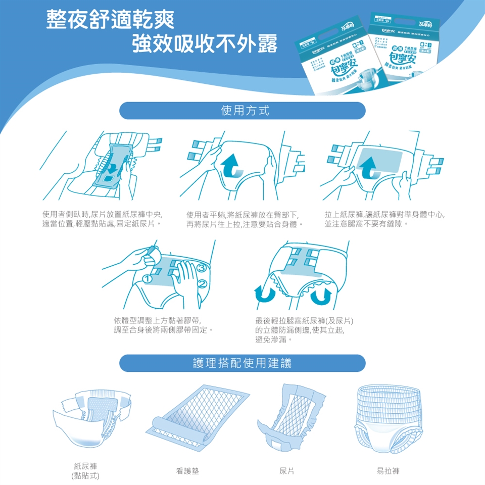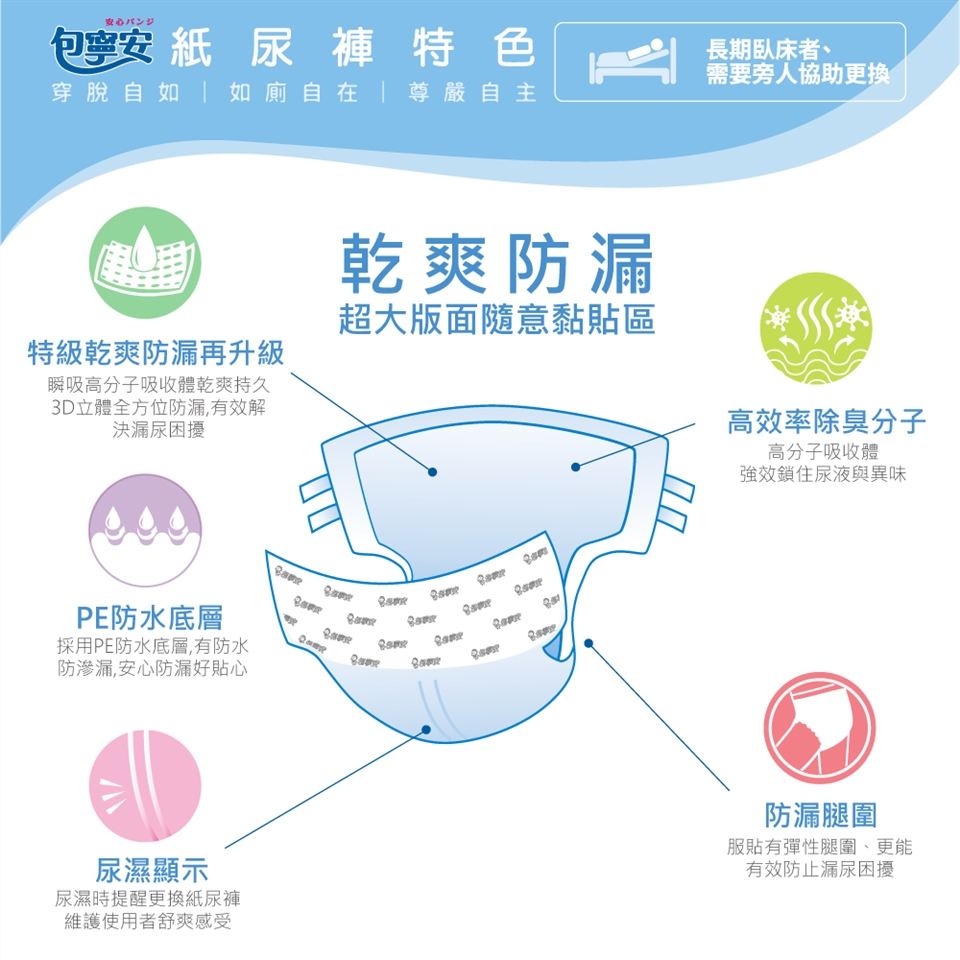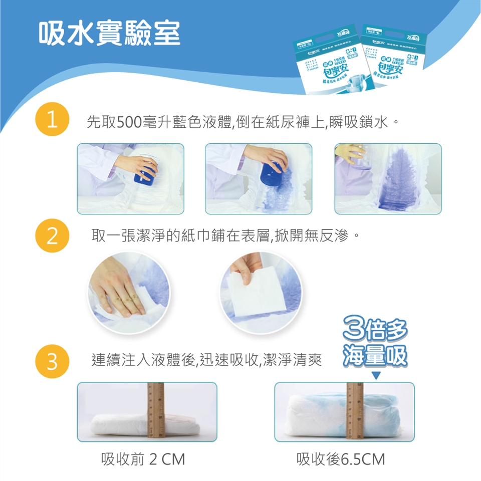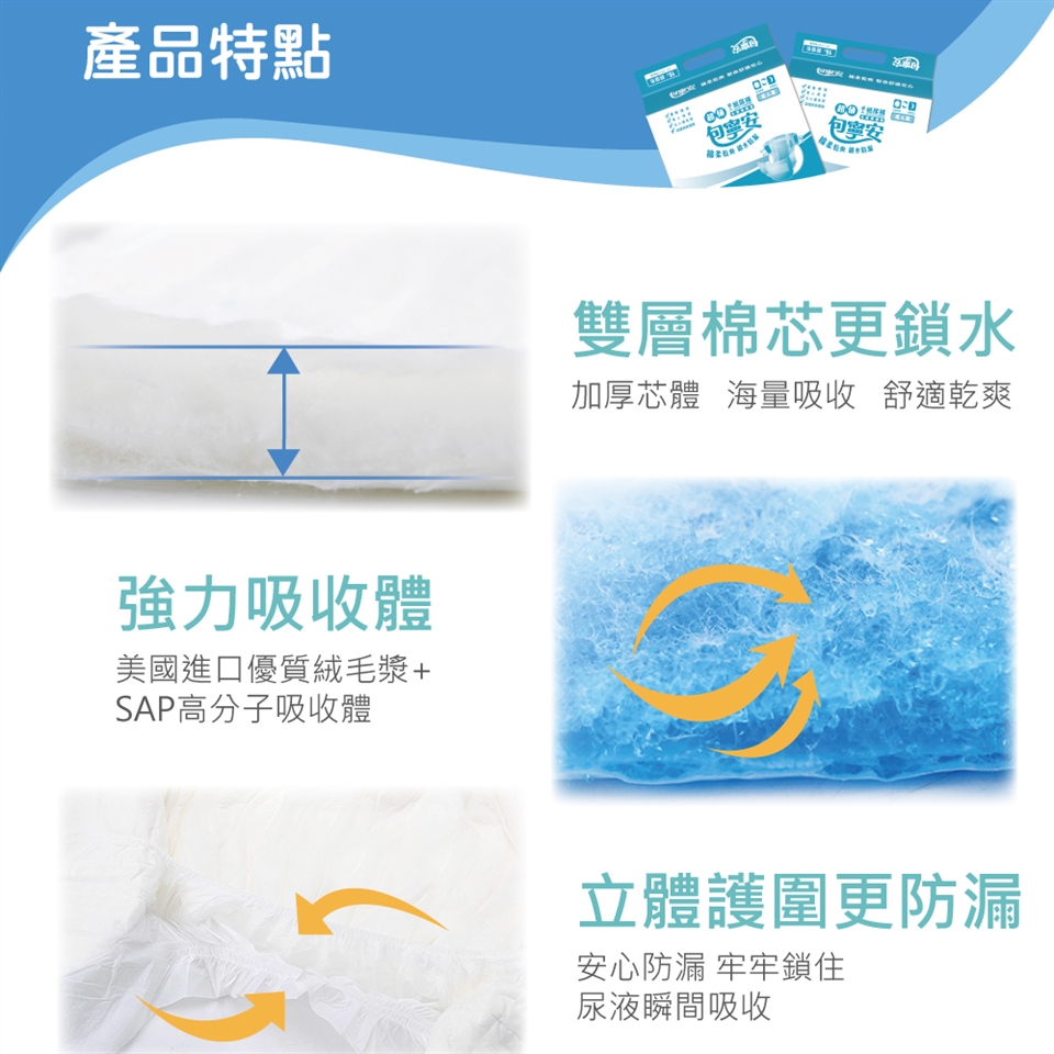 *特級乾爽防漏再升級-瞬吸高分子吸收體乾爽持久,3D立體全方位防漏,有效解決漏尿困擾!