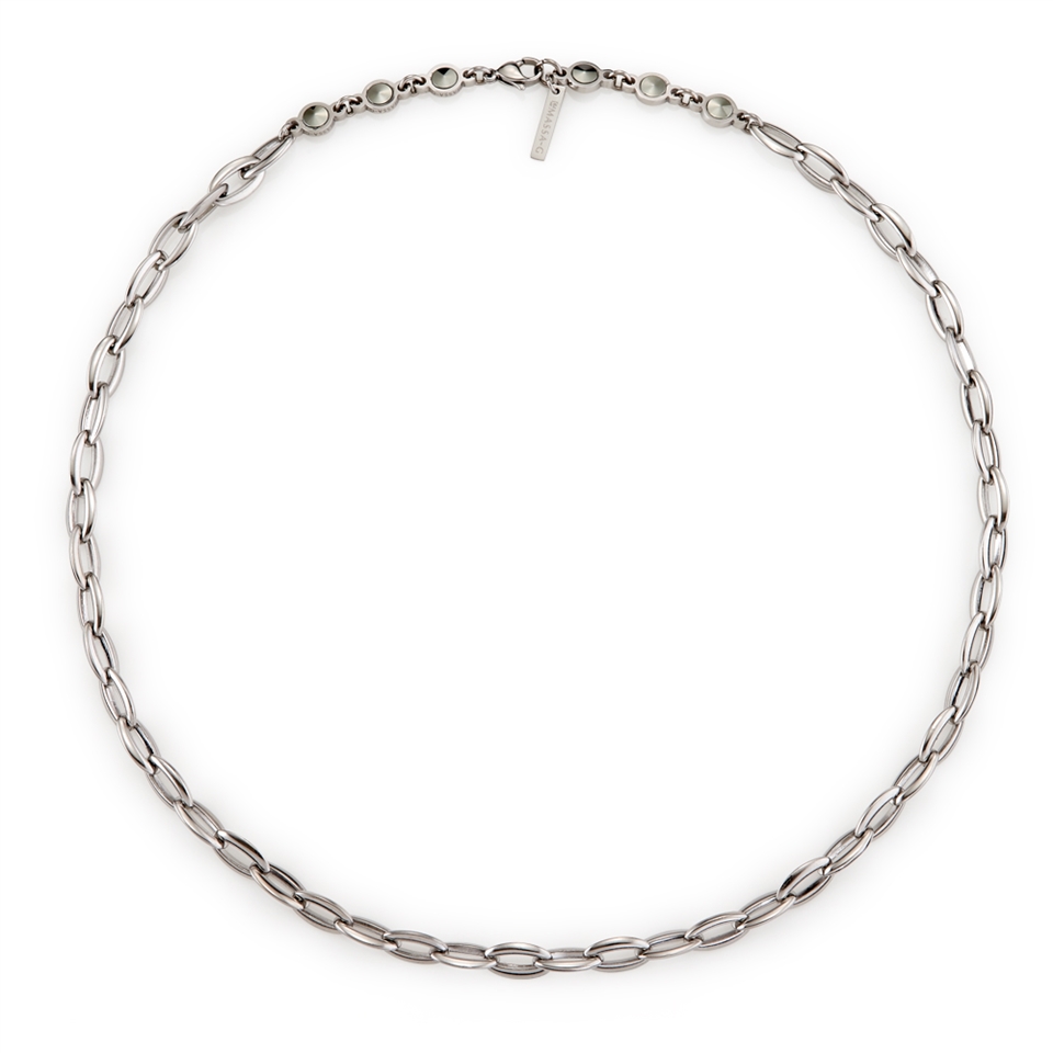 這條項鍊由6顆金屬鍺錠和高品質白鋼製成,每一顆鍺錠如同阿波羅手中的光箭,閃耀著非凡的光芒。