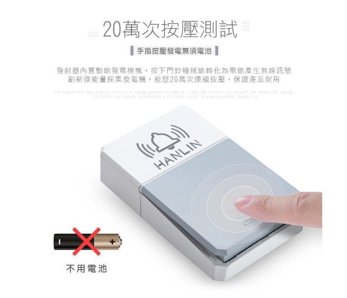 2.防水按紐 ,發射器按壓自發電(免裝電池)