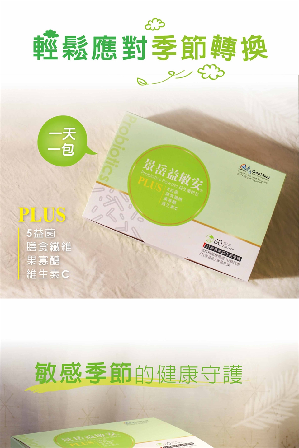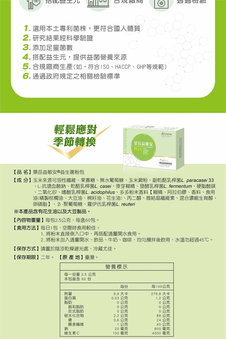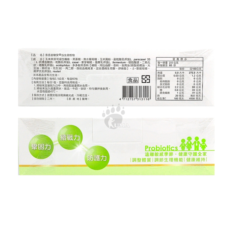 中文品名:景岳 益敏安益生菌粉包