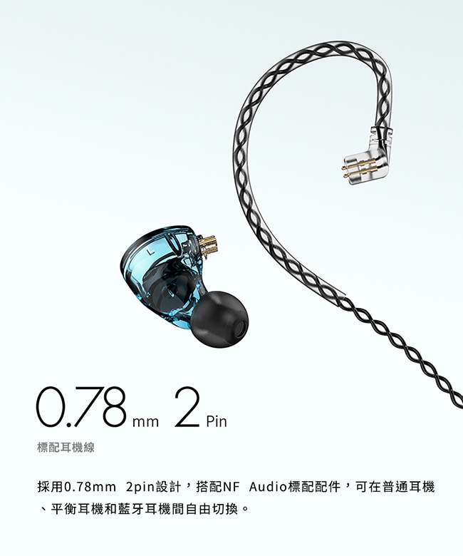 採用0.78mm可換線設計,可另搭配不同的耳機線材或是無線藍牙模組。