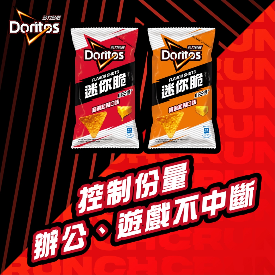 1.比現有的多力多滋玉米片小3倍,更好入口且不會掉屑。