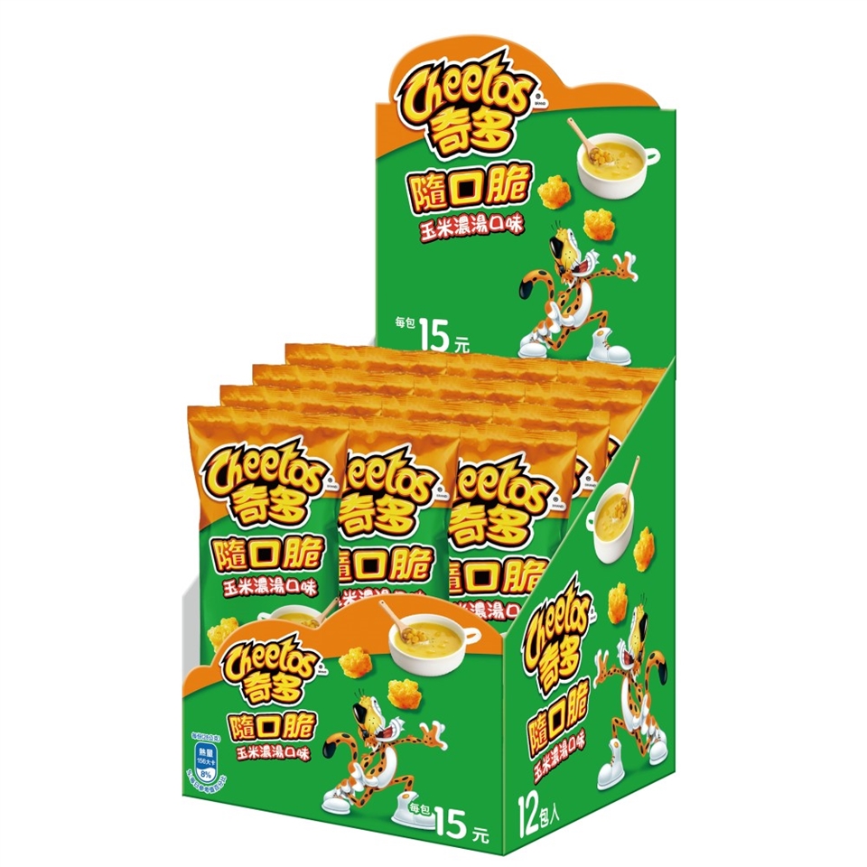 大人和小孩都愛的玉米濃湯,香甜玉米配上濃郁奶油,結合口感酥脆紮實的奇多玉米棒,鹹甜濃郁的好滋味,適合全家人一起分享