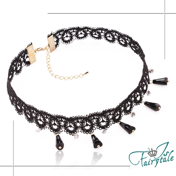 歐美復古性感蕾絲造型,黑水晶流蘇風格潮流時尚,
