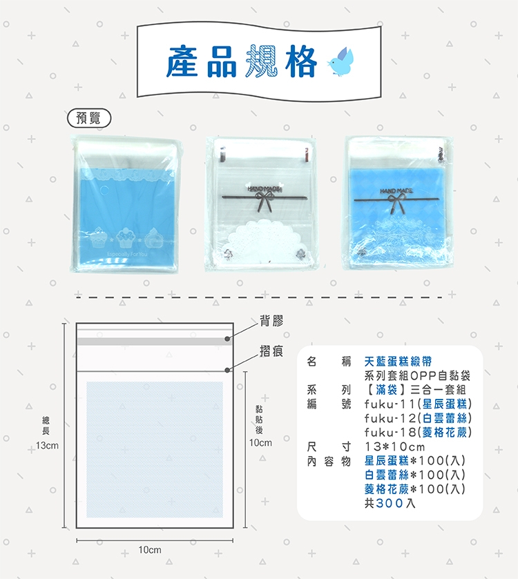 【滿袋】天藍蛋糕緞帶-OPP自黏袋