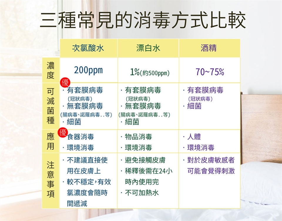 1. 不可食用、不可漱口、不可洗滌蔬果、不可與身體長時間接觸 (皮膚觸摸到消毒水,用清水沖洗)