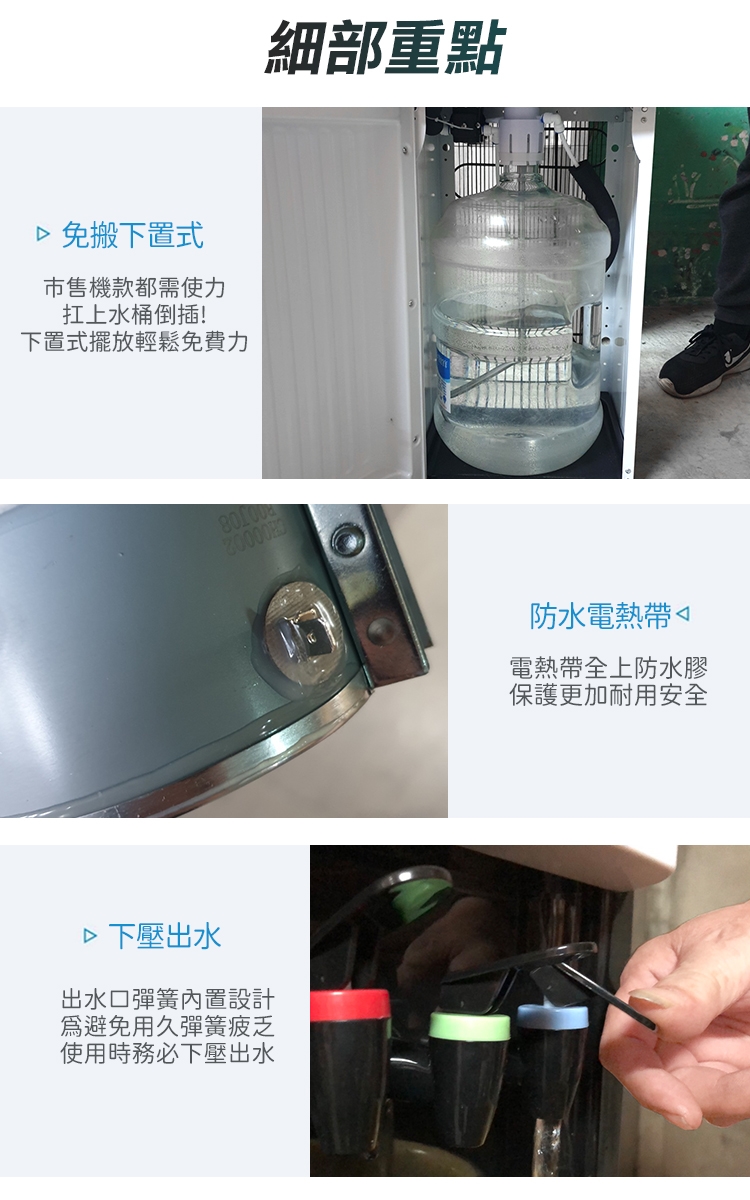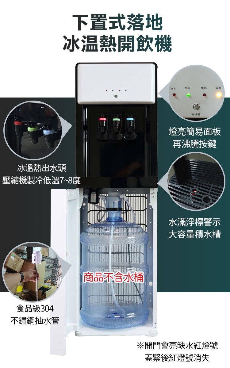 **下置式換桶裝水免搬超輕鬆,冰溫熱溫度到位**