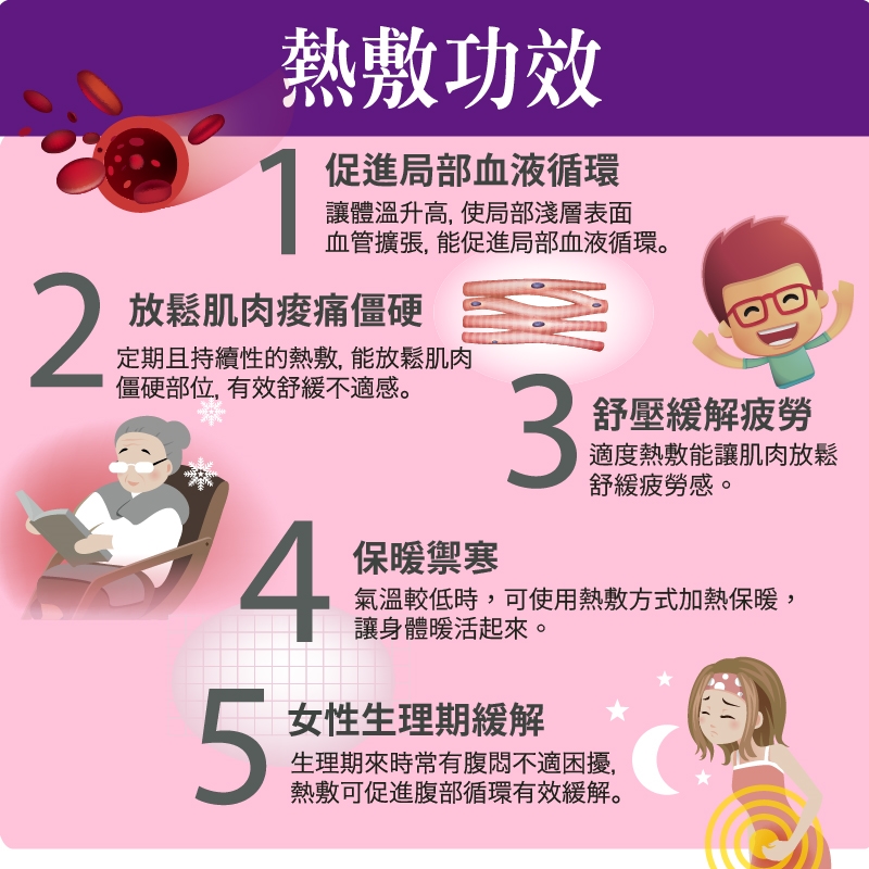 1.乾敷: 插電啟動後,按下控制器選擇適合溫度即可享受熱敷,2小時自動安全斷電。