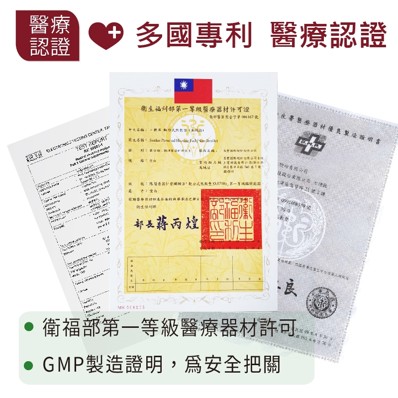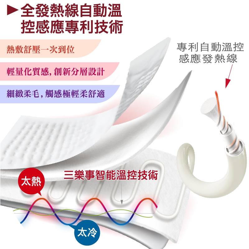 1.乾敷: 插電啟動後,按下控制器選擇適合溫度即可享受熱敷,2小時自動安全斷電。