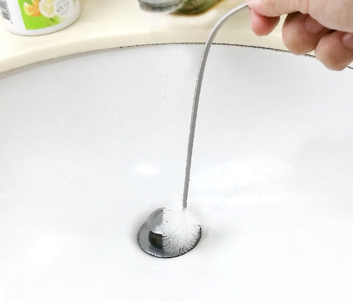 ◎簡單步驟就能將水管中長期累積的毛髮髒汙抽出