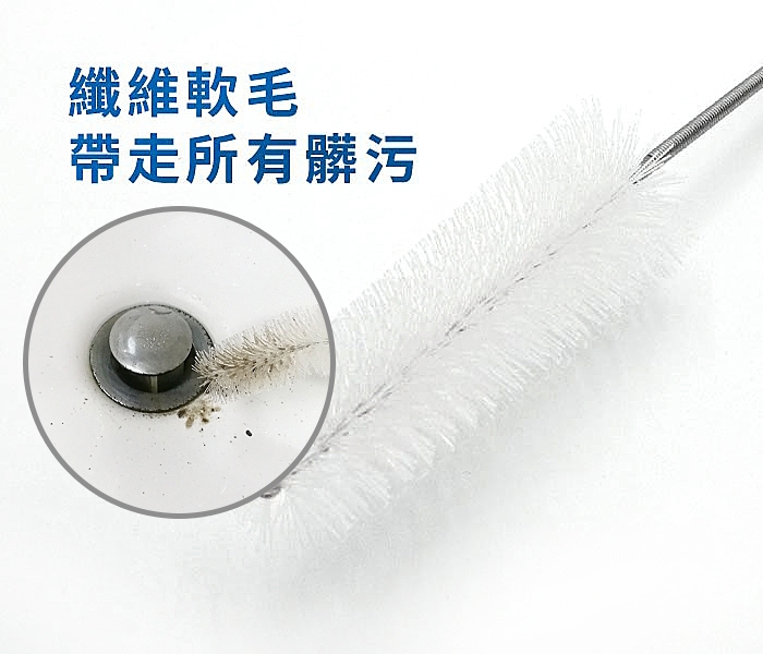 ◎堅韌刷毛,更徹底刷洗水管中的髒污