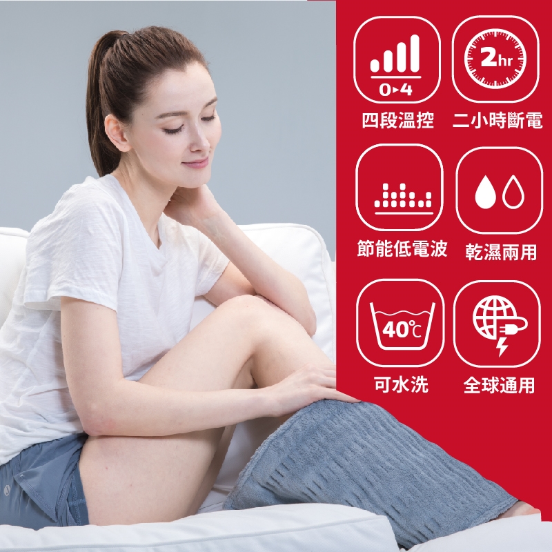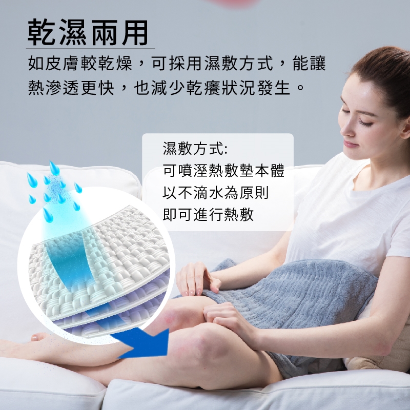 1.乾敷: 插電啟動後,按下控制器選擇適合溫度即可享受熱敷,2小時自動安全斷電。