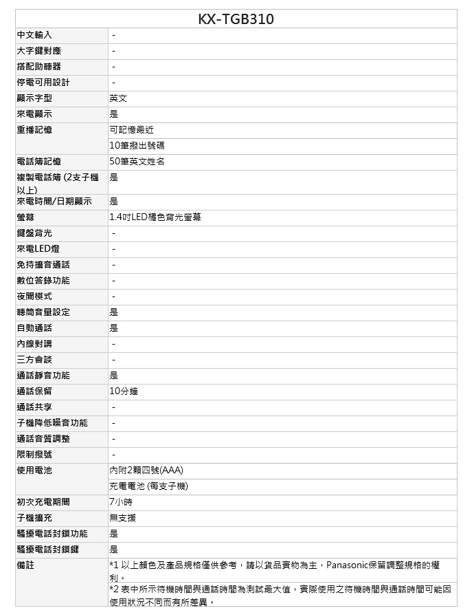 Panasonic國際 DECT數位無線電話(KX-TGB310TW)