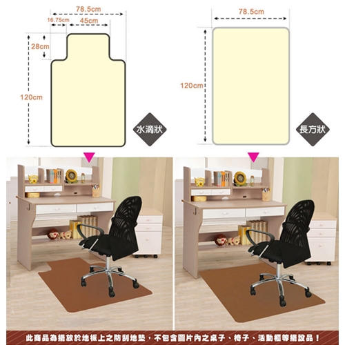 當木質地板或高貴石材已經成為家裡地板的主流材質時,您是否曾為了怕家中地板被刮傷而傷腦筋呢?【第二代CHAIR MAT】120*78CM防刮地墊,為外銷日本的台灣精品,可防止桌椅腳、輪子等對地板的損傷,國內首次上市新產品,無論是自宅或辦公室都能使用,讓您避免並解決地板刮傷的問題,是絕對好用的地板守護神喔!