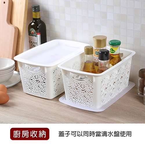 ■放置廚房收納,蓋子也可當作滴水盤使用。