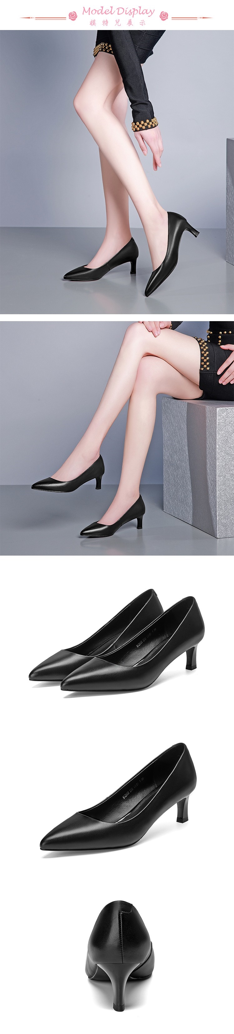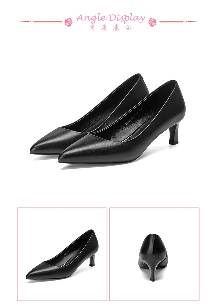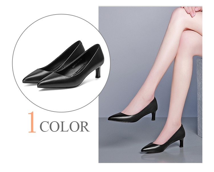 【Kissxxx】真皮頭層牛皮俐落尖頭舒適機能5CM高跟鞋 黑