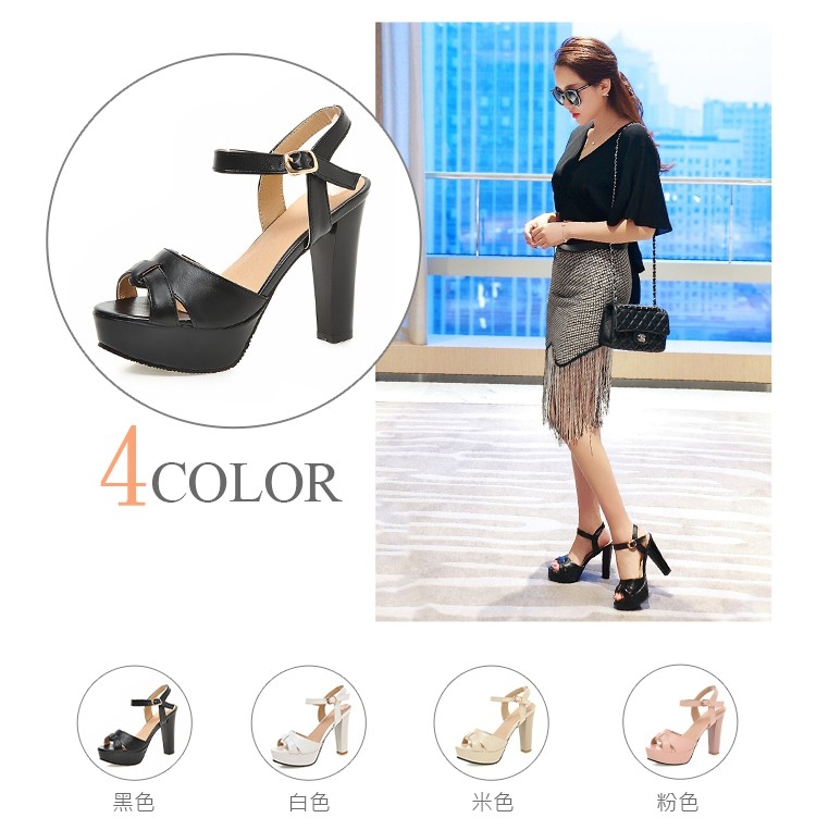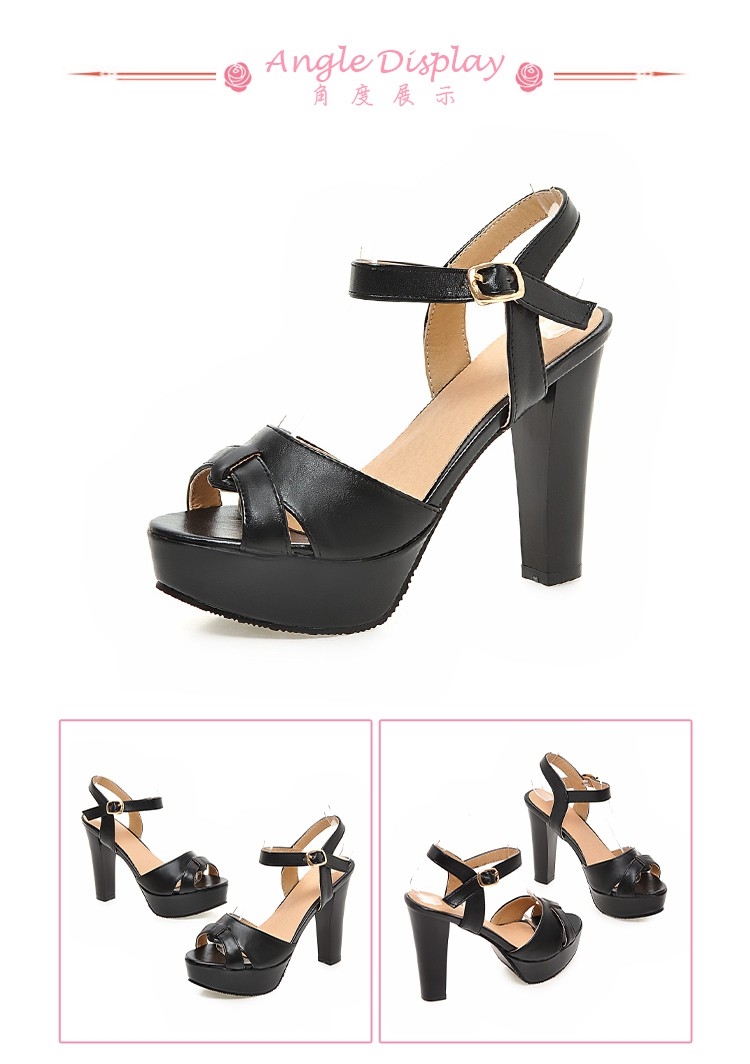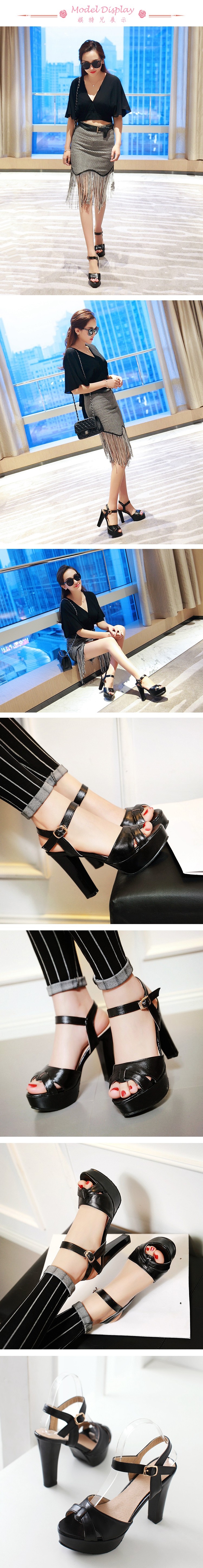【Kissxxx】優雅線條縷空露趾防水台高跟涼鞋 黑