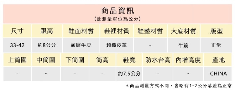 2.鞋類商品依功能及用途之不同,鞋底各有其止滑係數之個別不同,使用鞋類商品請用於正常平坦之路面,非雨鞋或雨靴類商品,請避免穿著於下雨濕滑路面上行走。