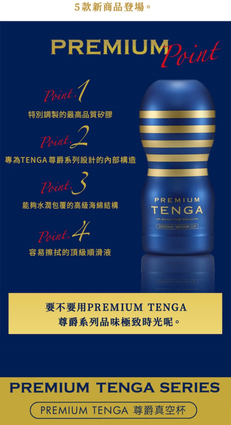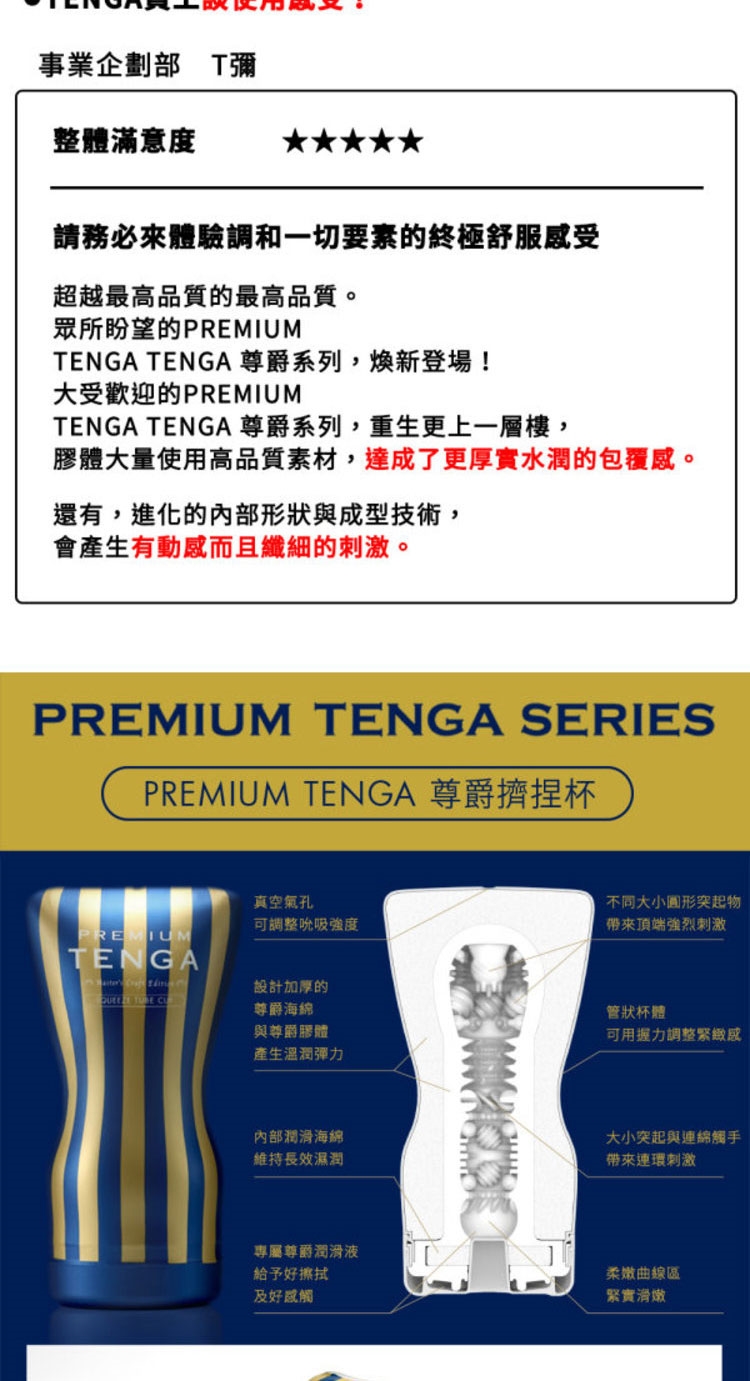 PREMIUM TENGA SERIES豪華杯系列,由甄別嚴選的頂級材料和十五年爐火純青的熟練技術製成。