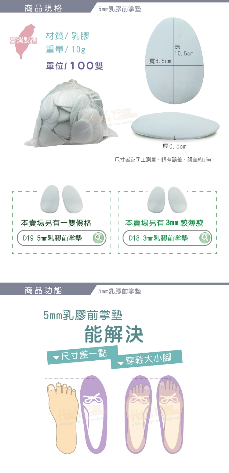 5mm乳膠前掌墊能解決尺寸差一點、穿鞋大小腳