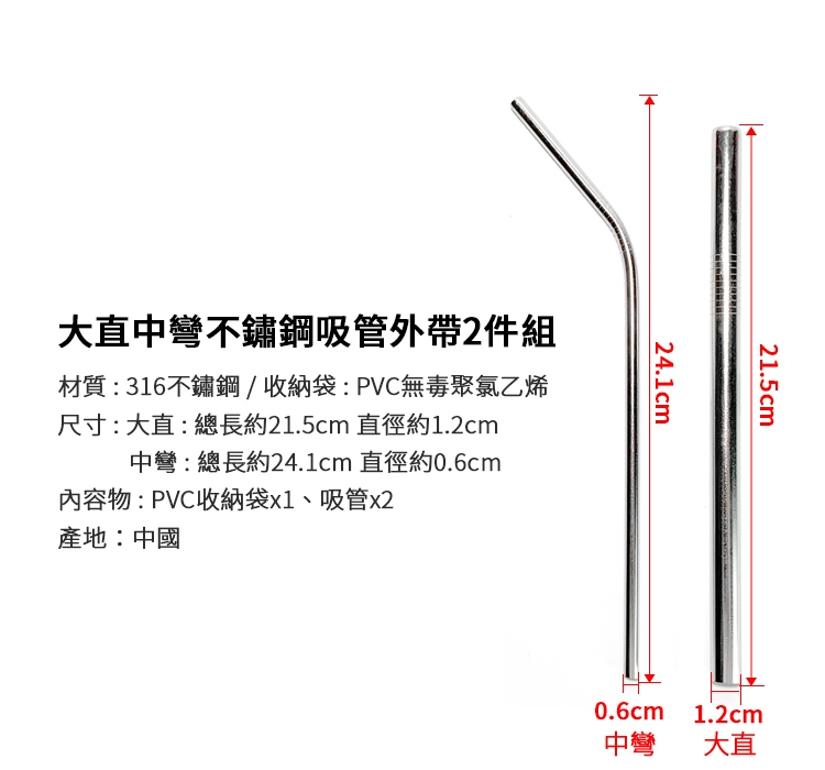 材質 : 316不鏽鋼 / 收納袋:PVC無毒聚氯乙烯