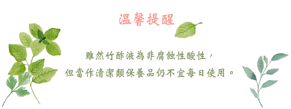 雖竹醋液非腐蝕性酸液,但當作清潔類保養品乃不宜每日使用