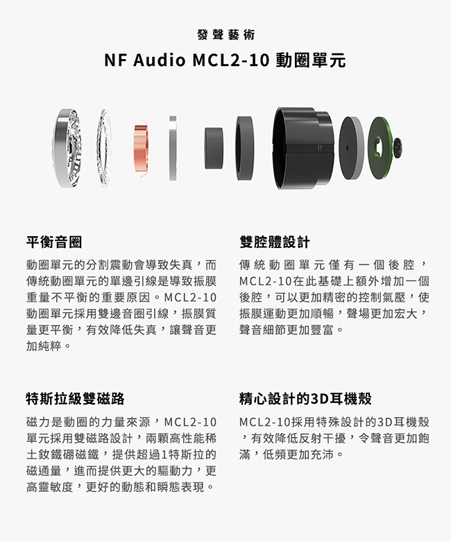 MCL2-10單元採用雙磁路設計與雙邊音圈引線,