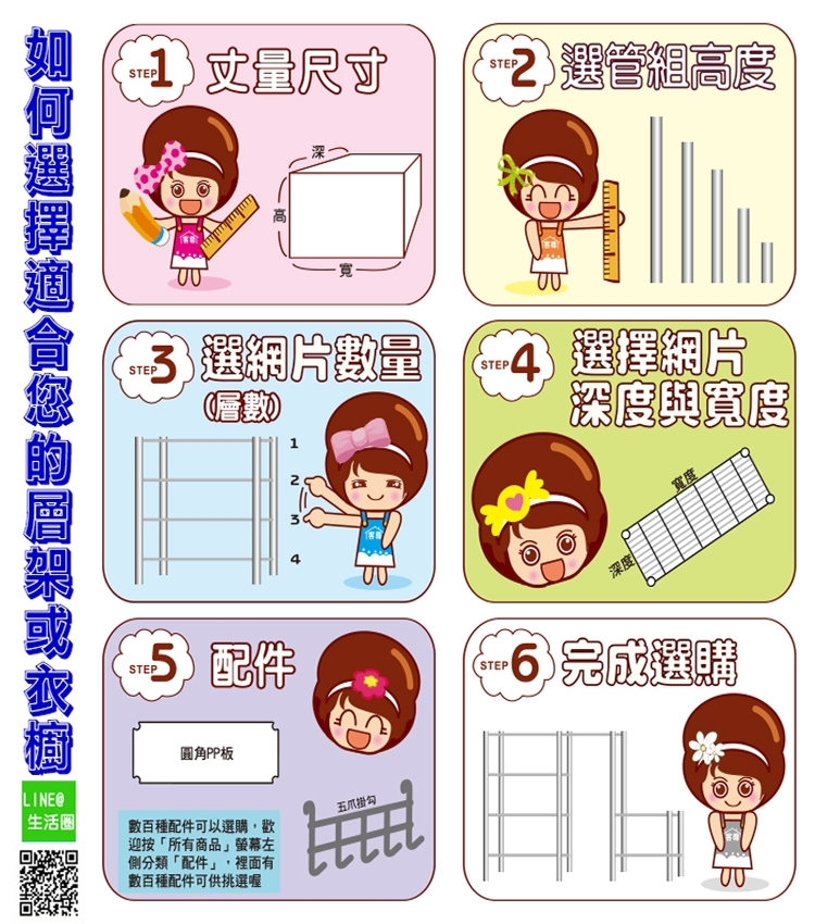 *請注意:本商品因是組合式層架,故說明書為共用版本,會教您如何組裝,詳細配件數量如上方規格明細