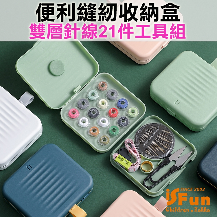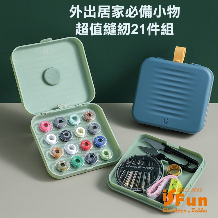 多功能工具組合共有16色棉線/皮尺/剪刀/針盒/頂針/穿針器,共21件,