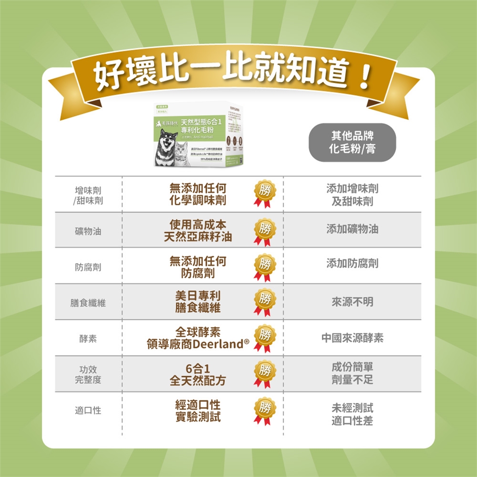 1、毛孩時代的「天然型態6合1專利化毛粉」主成分有哪些呢?