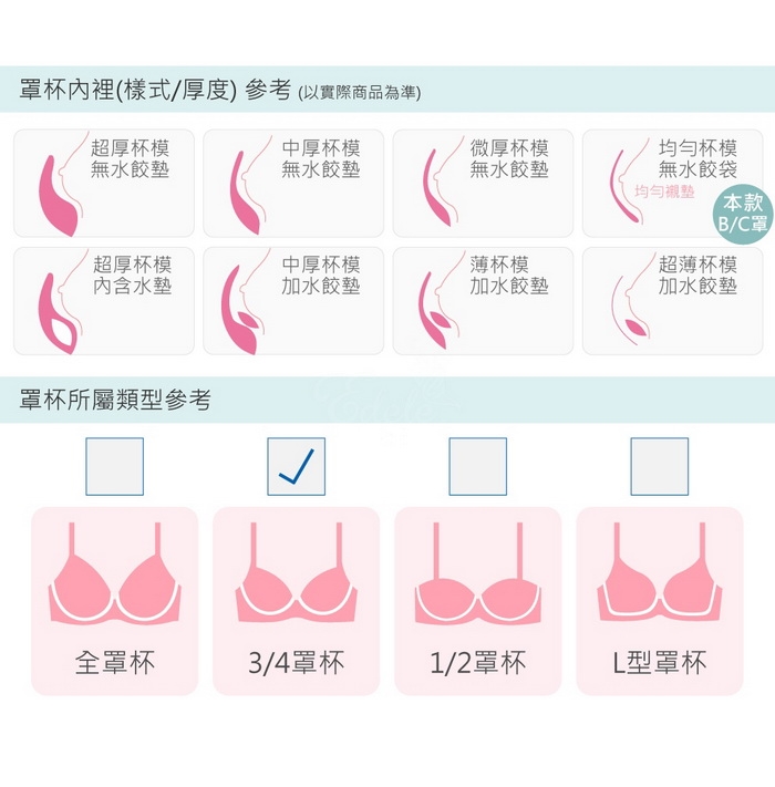 B/C罩杯為均勻襯墊,最厚度約0.5cm