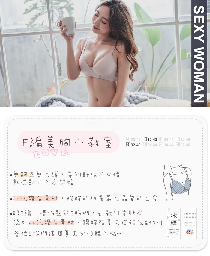 無鋼圈內衣,輕柔提托胸型釋放壓力,大幅降低有鋼圈的束縛感。