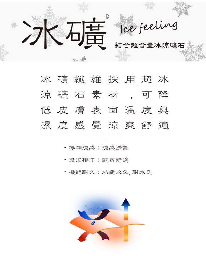 ◆冰礦紗:結合臺灣冰涼礦石,接觸肌膚沁涼透氣