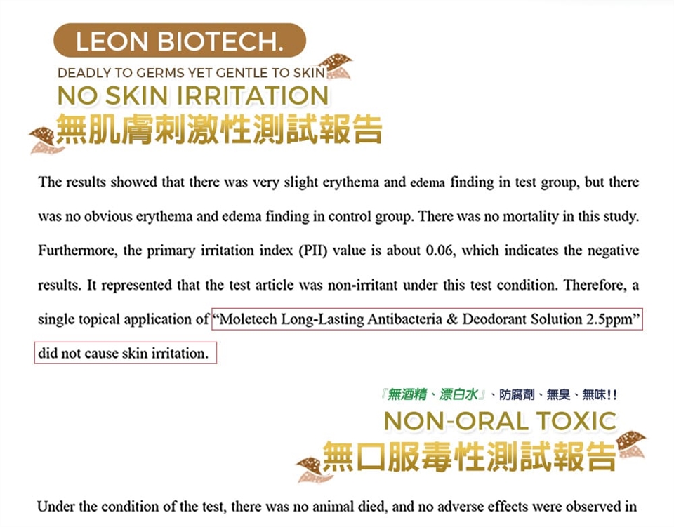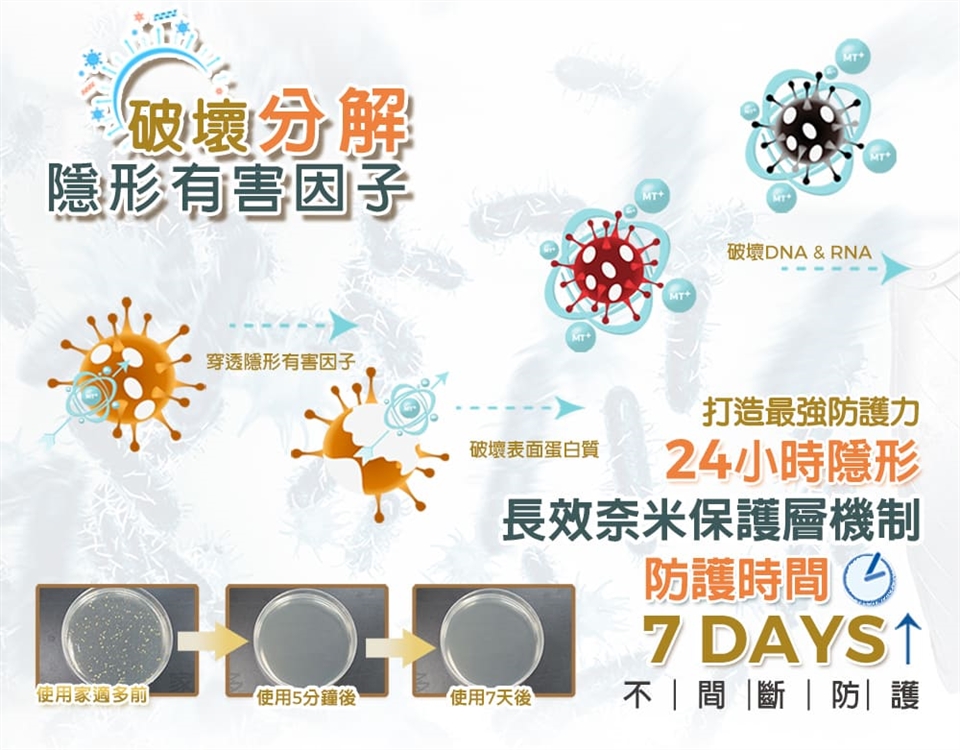 MOLETECH™長效型消臭防護配方,採用物理性分解原理,中和異味分子來源,維持空氣清新自然。