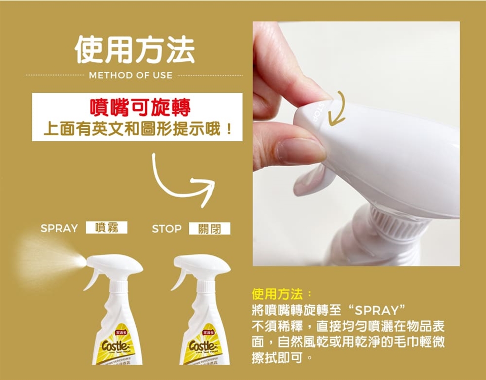 STEP 2|距離物品表面約20公分均勻噴灑。
