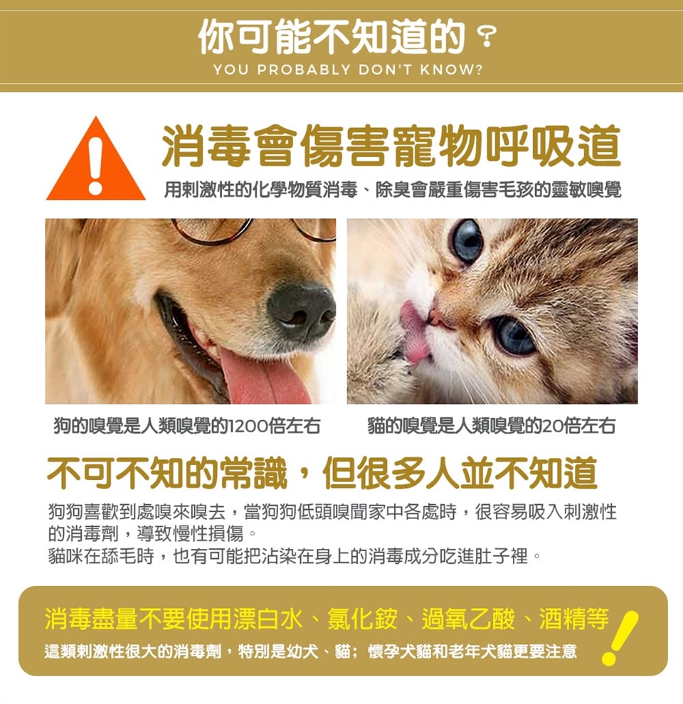 A1:建議僅使用於環境與物品表面,不直接噴灑於寵物身體。
