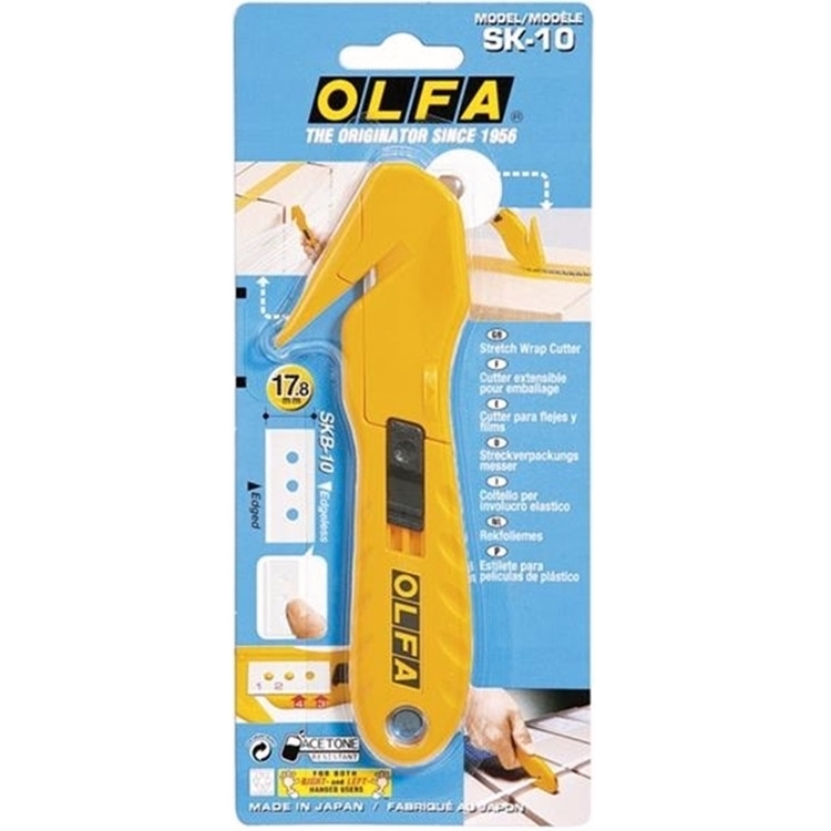 ●【品名】日本OLFA安全拆箱刀開箱刀SK-10包裝繩切斷器(握把抗丙酮;右左手通用)切割器切斷包裝束帶紙箱封膠封膜