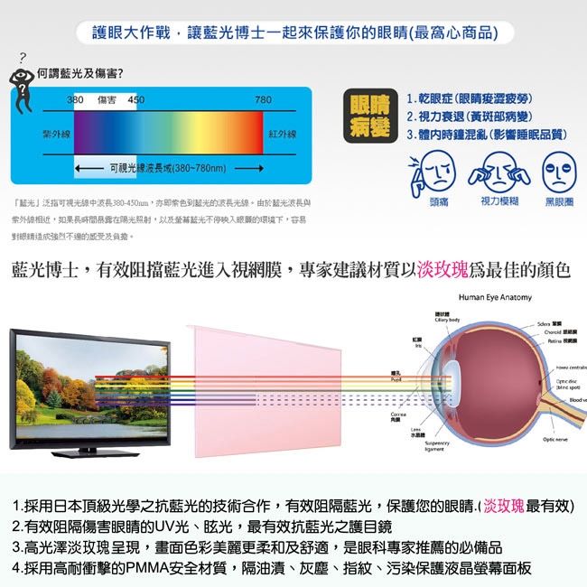 ◎讓眼晴戴眼鏡,不如讓螢幕戴抗藍光護目鏡,螢幕壞了可重買,但眼晴受損是不能再等補救了
