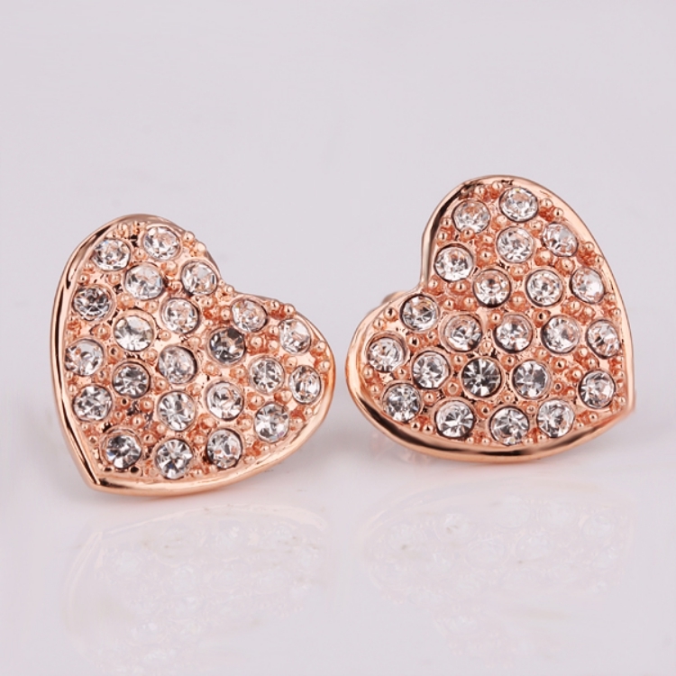 【Aphrodite 愛芙晶鑽】桃心滿鑽經典款造型耳環(玫瑰金色)
