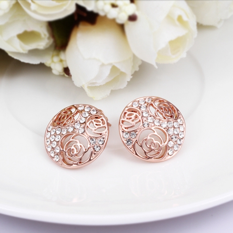 【Aphrodite 愛芙晶鑽】精緻玫瑰縷空圖形水鑽耳環(玫瑰金色)