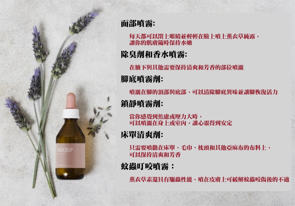 鎮靜噴霧劑:當你感覺到焦慮或壓力大時,可以噴灑在身上或室內,讓心靈得到安定