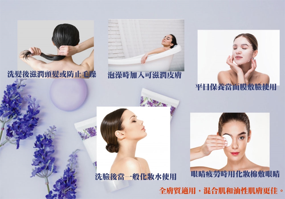 面部噴霧:每天都可以閉上眼睛並輕輕在臉上噴上薰衣草純露,讓你的肌膚隨時保持水嫩