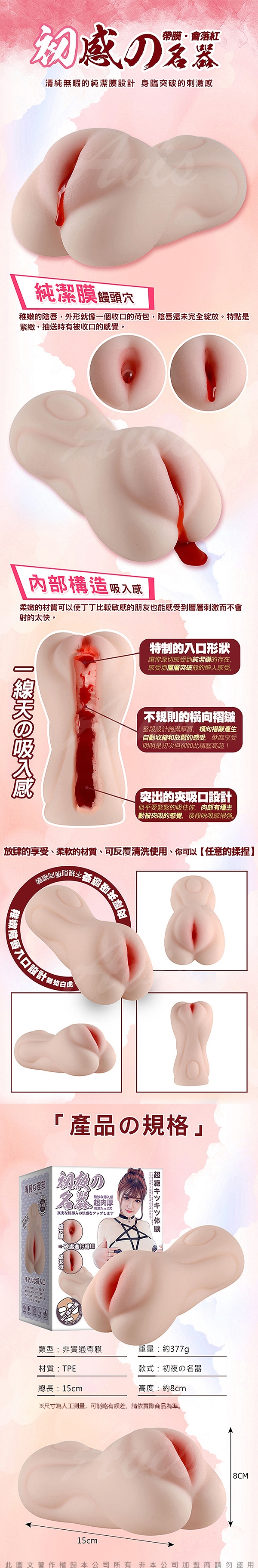 .商品名稱:初夜の名器 初夜落紅緊致包裹自慰器-非貫通