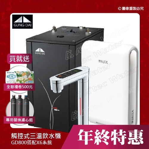 【GUNG DAI GD-800/GD800櫥下型觸控式三溫飲水機】搭配BRITA X6超濾四階段硬水軟化型過濾系統