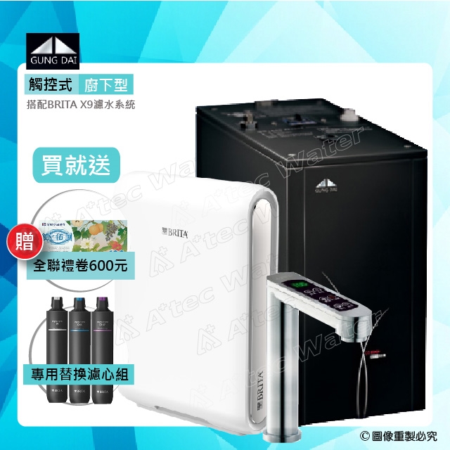 【GUNG DAI GD-600/GD600櫥下型觸控式雙溫飲水機】搭配BRITA X9超濾四階段硬水軟化型過濾系統